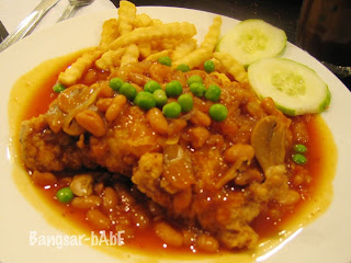 The freshly fried chicken chop was deliciously crispy on the outside. A thick piece of juicy chicken thigh was revealed beneath all that crispiness. The sweetish tomato sauce with garden peas and baked beans was perfect with the already scrumptious chicken. I enjoyed mopping the sauce with the crinkle-cut fries that came with the dish.