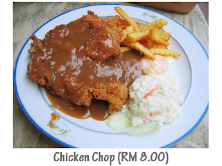We both ordered the chicken chop (RM 8) which took 15 minutes to arrive.The crispy breaded chicken was served smothered with brown sauce, chips, coleslaw and a fried egg.