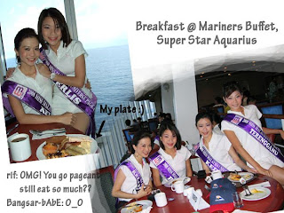 We also went on the Superstar Aquarius on the 5th day of the pageant, courtesy of Star Cruises, one of our official sponsors. On the cruise, we were swamped by tourists wanting to take pictures of us, and with us. I felt like an artifact, or a museum display.