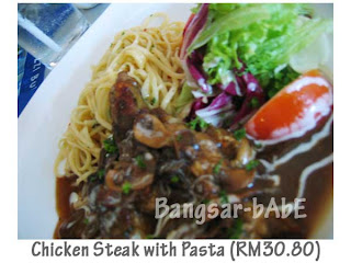 The Chicken Steak with Pasta didn”t taste that great. While the linguine was al dente and grilled chicken was tender, the mushroom sauce was too salty and tasted a bit starchy.