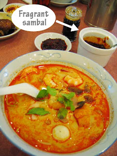 My curry laksa (I opted for kuay teow) was not bad. The curry broth was thick yet not cloying and spicy with a hint of sweetness from the coconut milk. The noodles came topped with cockles, fish balls, prawns, tau fu pok and garnished with mint leaves. I found the portion quite small. 0_0