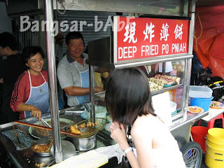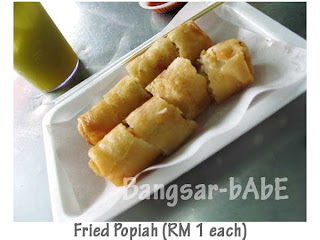 There was a huge crowd cramped in the small walkway and many more standing, waiting for their place on the humble metal stools. We waited for a good 15 minutes for a seat which while waiting, I ordered some fried popiah from the stall next door.