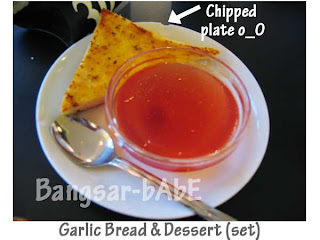 I ordered the mixed chop set. The set comes with a soup, main course, garlic bread, dessert and a drink. I had the borsch soup and the iced milk tea. rif went for the cheese baked rice with pork chop (as he always does o_0) and original iced milk tea. We also ordered a French Toast to share.