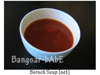 The borsch soup tasted very diluted…like tomato ketchup in water. The garlic bread was normal…and the jelly tasted like those cheap hypermarket house brand jams.