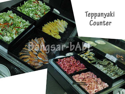 The buffet consists of a sushi bar, Teppanyaki counter, soup and noodles, tempura and desserts.