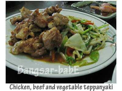 The chicken teppanyaki was pretty good. Juicy, chunky and well-seasoned, I couldn’t find fault with it. The beef, while tasty didn’t measure up to the chicken. And though the prawns were sweet and fresh, I didn’t care much for them. rif didn’t like the vegetable teppanyaki. He found it too salty.