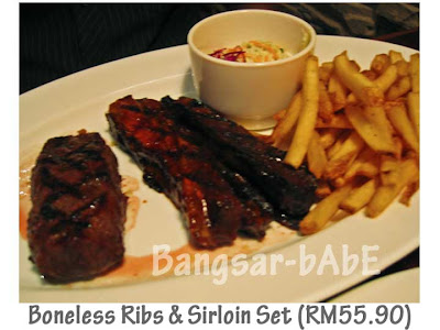 This time, he ordered the boneless ribs and sirloin steak set. rif chose chips and coleslaw for his sides, plus blue cheese topping for his steak (add-on). Beautifully basted, the fork-tender ribs had a delicious smoky BBQ taste. I couldn’t help but wonder what if they had used the “real thing” instead of a cow.