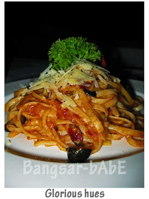 The Napolitana is a simple pasta made fresh with plump, ripe tomatoes, olives and seasoned with just the right amount of herbs. Its luscious flavour lies within the fusion of good quality olive oil, onions, garlic, salt, pepper and the right amount of herbs. Topped with grated Parmesan cheese, the sauce is chunky, tangy and light, and the linguine, firm to the bite.