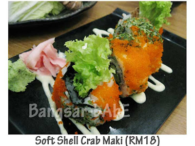 We also shared a plate of Soft Shell Crab Maki. Crispy soft shell crabs wrapped with rice roll, coated with fish roe and served on top of mayo drizzles, it was scrumptious!