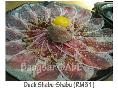 The duck set comes with duck slices and minced duck meat in the center with a raw egg on top. The waiter formed meatballs out of the minced duck. The duck slices were tender and the meatballs, very well-flavoured.