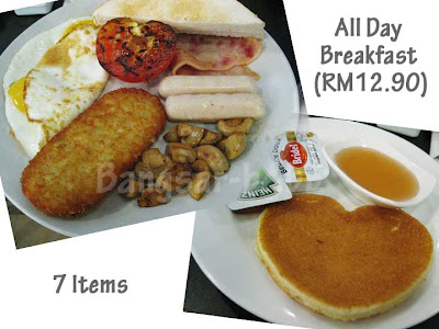 I went for the “Do It My Way” (available all day), with 7 items for RM12.90. I choose the grilled tomato, fried eggs, turkey bacon, hash brown, chicken sausages, sauteed mushrooms and pancake. With a cup of regular long black.
