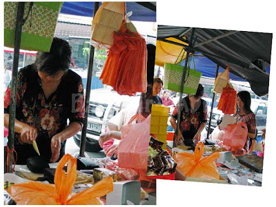 Becky got herself a packet of pandan rice from the market. Inside the pack was a scoop of fragrant pandan rice, fried dried shrimp & ikan bilis and shredded egg omelette.