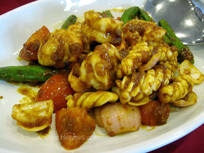 The Nyonya-style seafood (RM20), which comprised big prawns, squid slices, quartered onions, tomatoes and okra in a spicy tomato-based gravy, was a delight to eat. I was rather impressed with the chef’s skills — he/she managed to retain the natural sweetness and freshness of the seafood, especially the prawns.