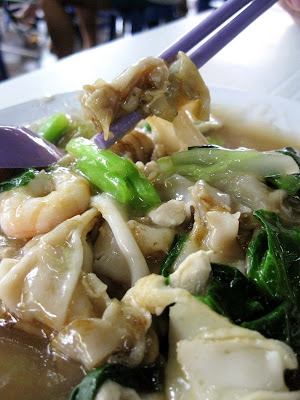The char kway teow was as tasty as I remembered it to be, with huge prawns that were fresh and succulent. Cooked with coal fire, my premium plate (RM8.50) came with slightly crisped Lap Cheong (Chinese sausage), juicy cockles, egg, beansprouts and chives. To add oomph to the noodles, the auntie added bits of crushed lard into the mixture, together with the bigger pieces of lard. A little oily, this one, but the taste hits the spot and it lingers on in the mouth.