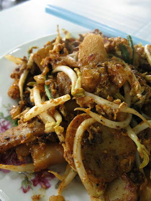 One of my regular readers told me about the Char hor fun at Chulia Street. Based on her directions, we found ourselves in front of a stall called Chiew Kee. The auntie was quite cranky, and since I speak very little Chinese, I had a hard time ordering a plate of Char Hor Fun (RM5) and Hokkien Char (RM5).