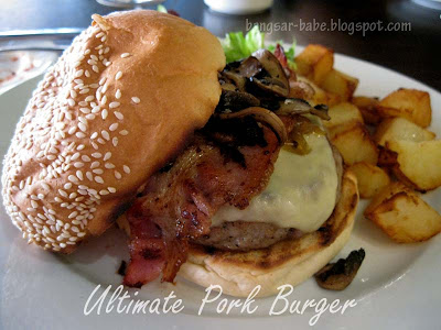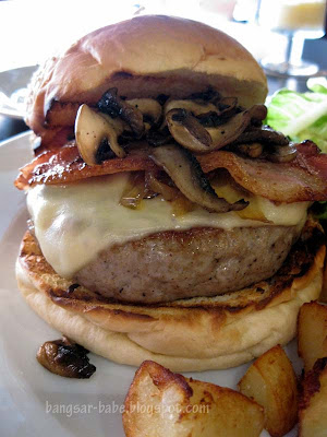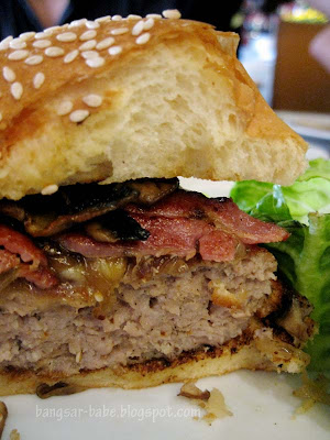 The plan was to order one pork burger to share, but I insisted on having a whole portion to myself. The waiter took one look at me and said, “It’s a rather large portion. You might not be able to finish it.” To which I replied, “Bring it on!” The bun was nicely toasted and the patty was incredibly thick– topped with melted cheese, fatty bacon and sautéed mushrooms.