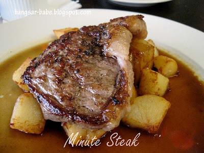 The minute steak was juicy, tender and rimmed in creamy fat. Not bad I thought — the brown gravy complemented the flavour of meat.