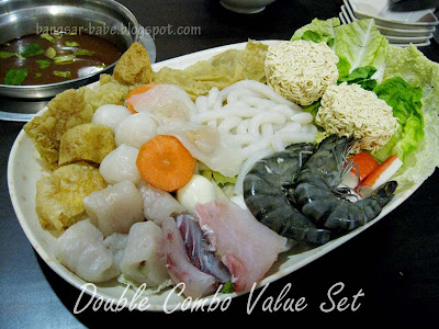 You get an individual pot of soup with a choice of clear, tomyam or curry soup. Great for those who can’t stand the idea of sharing the same communal pot. Since rif tagged along, we ordered the Double Combo Value Set (RM32.80) to share.