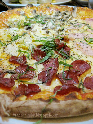 Pizza Quattro Stagioni (RM32) was a pizza with four toppings in each quarter; turkey ham, beef pepperoni, mushrooms and artichoke. The pizza crust was thin, crispy and crusty, with a hint of wood smoke.