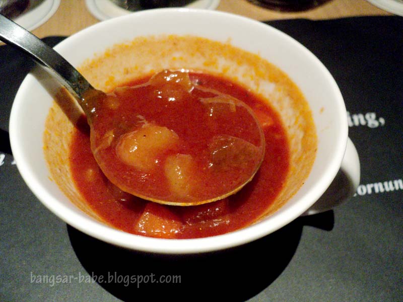 Dinner started with their complimentary chef’s soup. This tasted like a cross my favourite soups; tomato and minestrone. Chunky, tangy and redolent with herbs, I enjoyed this.