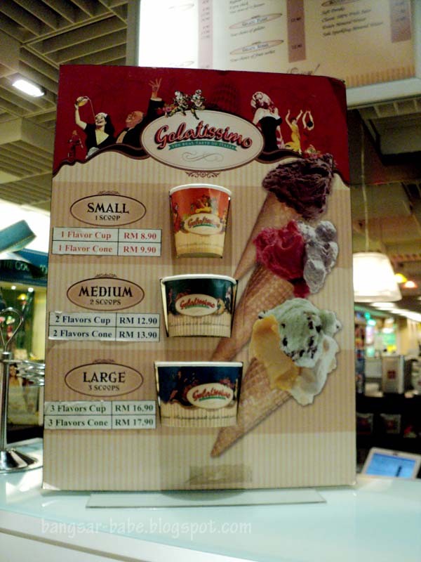 I was feeling crabby after a not-so-good day, when rif decided to cheer with up with a gelato from Gelatissimo. After sampling 5-6 gelati, I decided on the Veronese Chocolate and Biscottino (RM13.90 for 2 scoops – cone, RM12.90 for 2 scoops – cup).