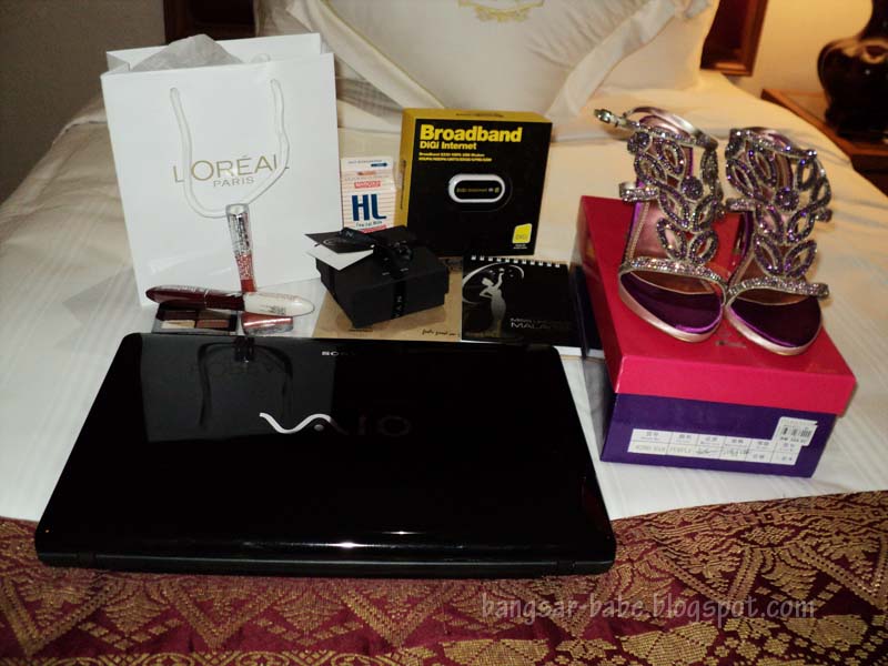 We got a SONY VAIO laptop, shoes from Rockin’ Reptile, organic cotton tee from Mell Basics, make up courtesy of Loreal Paris, Broadband by DiGi, silver jewellery from Yanvan and Marigold HL Milk (one whole fridge!). *happy dance*
