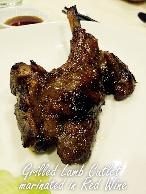 Grilled Lamb Cutlet marinated in Red Wine. Tender, meaty and perfectly marinated, the lamb had little or no gamey smell or taste. The red wine gave the meat an earthy flavour, hearty texture and bold flavour. Very nice with the three Grand Crus that LB and LA brought along. If I remembered correctly, I liked the Ch. La Confession St.Emilion Grand Cru Classe 2001 best. It has a nicer, smoother finish.