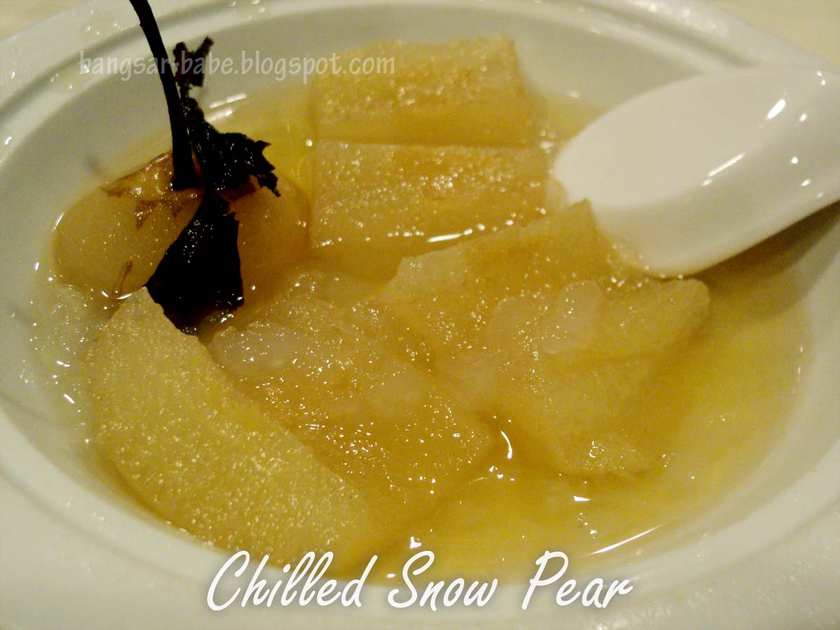 Ma Lai Koh & Chilled Snow Pear with Grand Burge Moscato 2008. The snow pear was nothing to shout about, but the Ma Lai Koh was quite nice. I usually donβt like steamed cakes because I find most of them a bit plastic-tasting, but this one was fluffy and not overly sweet.