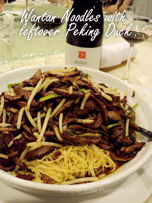 Wantan Noodles with leftover Peking Duck paired with Bodegas J C Conde Neo Sentido Ribera del Duero Tempranillo 2006. A tad salty, but it was still decent. I liked how βQQβ the noodles were, and there were plenty of duck slices. I reckon there was more duck than noodles. The Spanish wine had a deep flavour and a lasting finish, which complemented the noodles well.