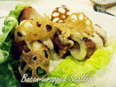 The oyster was luscious β juicy, slightly briny and tastefully seasoned. Scallops wrapped with crispy bacon reminded me of the bacon wrapped sausages in British pubs.