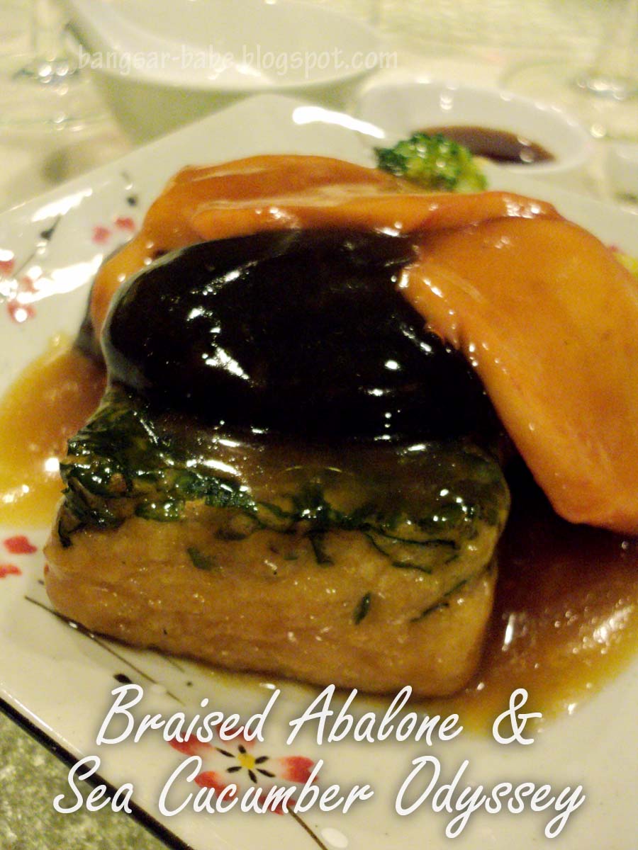 Braised Abalone & Sea Cucumber Odyssey with Christian Moueix Merlot 2005. I liked this, but I wasnβt so sure of the choice of wine. Oaky, deep and earthy on the nose, it didnβt quite click with the dish as I thought the wine overpowered the flavours of the abalone. The merlot was nonetheless, very good on its own.