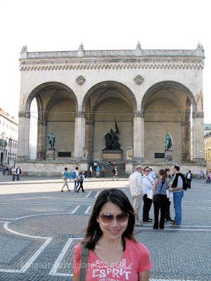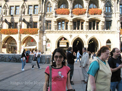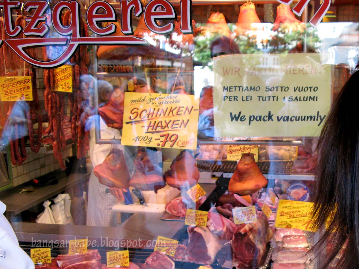 Munich is famous for its Weisswurst, a traditional Bavarian sausage (white sausage) made from minced veal and pork bacon. It is eaten without the casing, but silly me ate the sausage, casing and all. *shy*