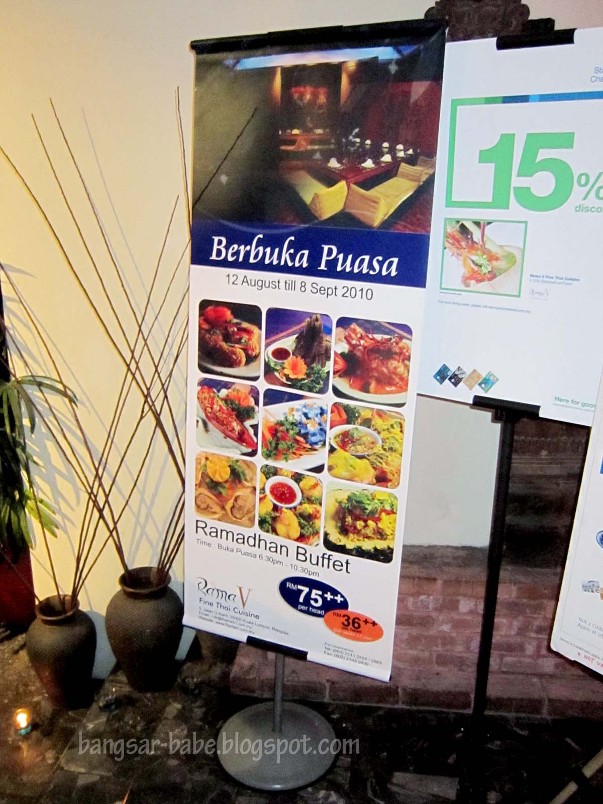 Buka Puasa Buffet Thai-style at Rama V. There’s nothing I don’t like about the sentence. I like buffets and I love Thai food. When Ciki invited me for dinner at Rama V, I quickly agreed (on behalf of rif too!).