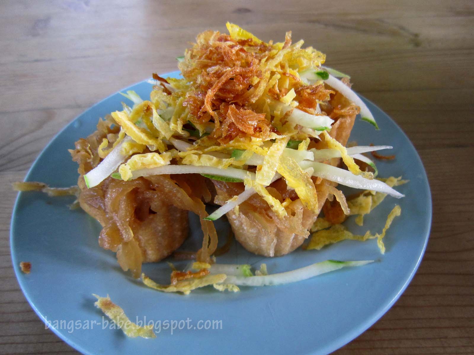 Pai Tee, also known as top hats, is a crunchy flour cup filled with julienned sengkuang, cucumber, omelette slices and fried shallots. These tiny treats went very well with the chilli sauce provided. Simply pop it into your mouth and enjoy its crunchiness. The ‘hats’ were quite small – I could have polished all 5 pieces easily.