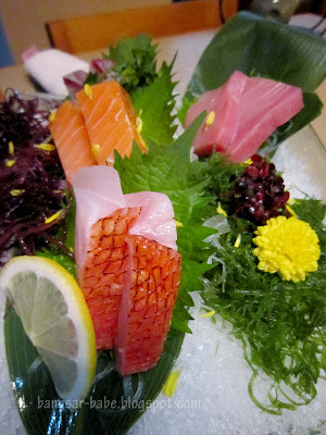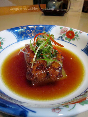 Assorted sashimi (RM85) was first brought to the table. This platter comprised salmon, yellowtail, sea beam and tuna belly on a bed of shaved ice. Presentation was lovely, but what impressed me was the freshness of the fish slices. The tuna belly was smooth and fatty, that it almost melted in my mouth. Salmon, yellowtail and sea beam were also fresh and a delight to eat.