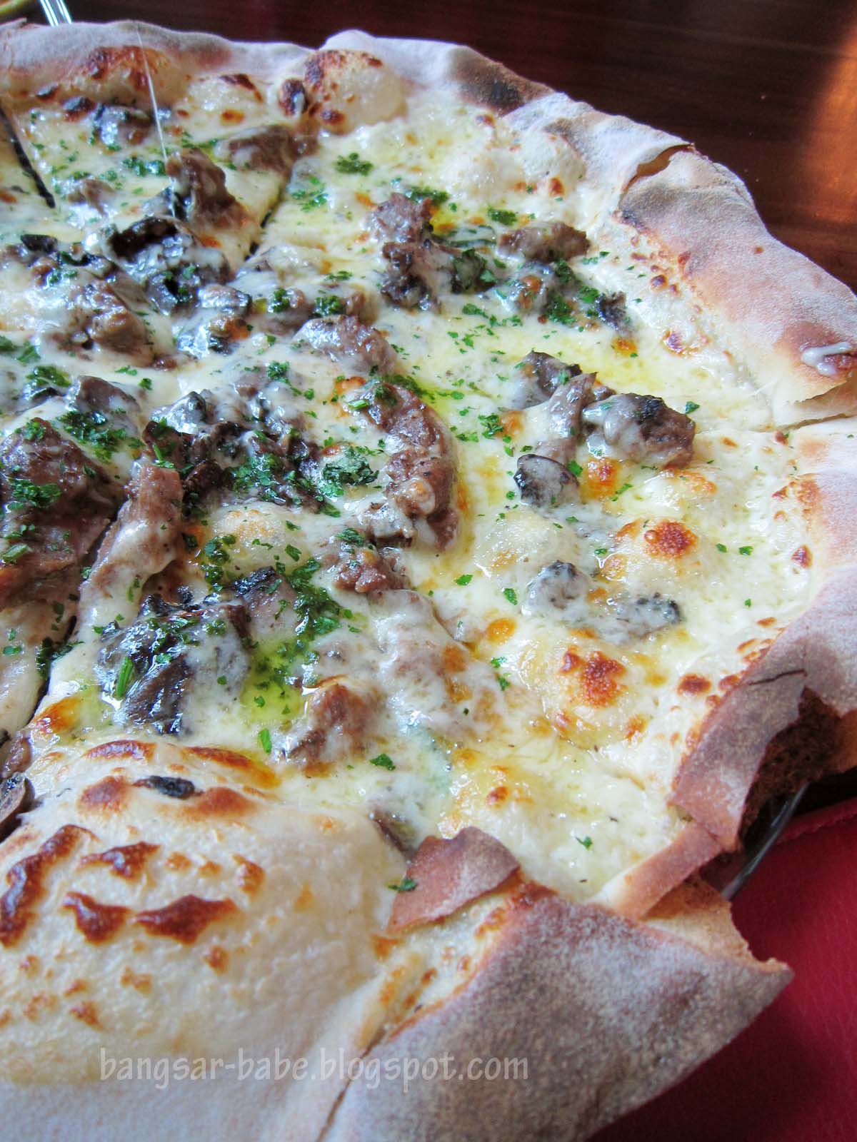 The pizza at Favola met all his requirements, but I wasn’t too fond of the charred bits. I guess this was matter of “taste is subjective.” That said, the topping of sautéed beef strips, wild mushrooms and white cheese sauce gave the pizza a delicious rich flavour.