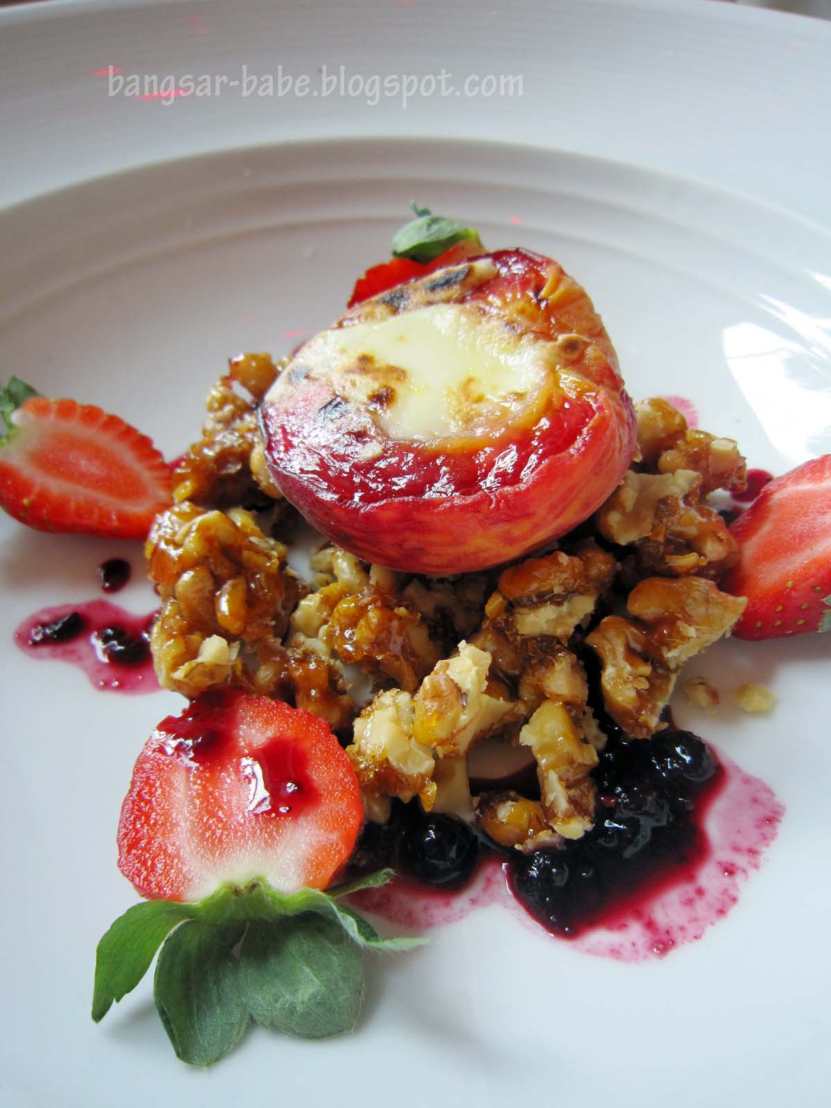 The tiramisu was frothy with a strong coffee flavour. I loved the “crackling”, which came in the form of candy bits. We however, preferred the tiramisu at Prime. My favourite of the lot was the baked fresh peaches with mascarpone and candied walnut. The walnuts gave the tender peach an addictive crunch.