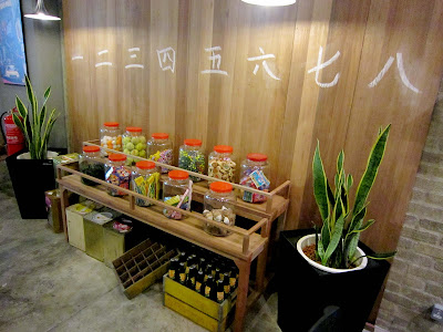 By knick knacks from the past, I meant toys most of us or our parents used to play with as kids (marbles, spintop, ping pong…) and old-school items like a radio, fan, bird cage, biscuit tins and Kickapoo bottles. They have ding dong, tora, nini and jelly in big glass jars at the counter!