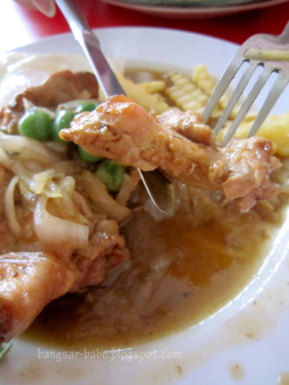 Truth be told, this wasn’t good at all. The chicken tasted old and dry. It felt as though I was chewing on a piece of rubber band that also had a cardboard texture. The gravy was as insipid as it looked and did not give the chicken any flavour.