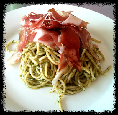 On lighter note, I had a simple pesto pasta with parma ham and salted caramel whoopie pie for lunch yesterday. The pasta was fragrant from the olive oil, blended pine nuts and basil leaves, and the parma ham gave it a salty and slightly smoky finish.