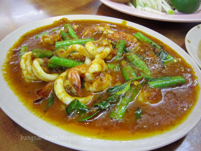 A serving of curry seafood cost RM5, so I expected little seafood in the dish. But I was pleasantly surprised to see 6-7 squid rings and 5 mid-size prawns swimming in the thick curry gravy — I felt bad for not liking the food. The curry was spicier than I liked it to be, but to be fair, it was decent.