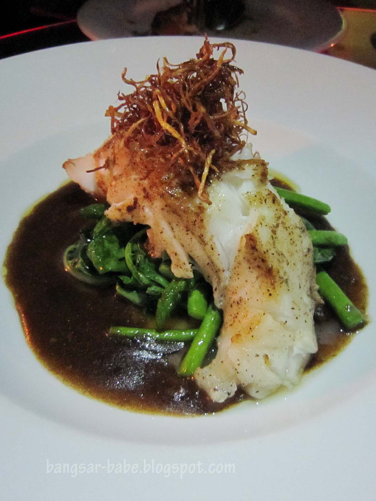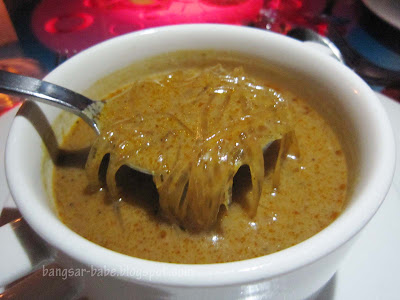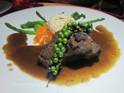 Pan seared salmon fillet with green curry and cream, steamed rice and sautéed capsicum. rif and I had a mini debate over this. He liked it because the salmon was full of flavour with a slightly smoke-y taste. I however, thought it would pair better with a milder sauce.