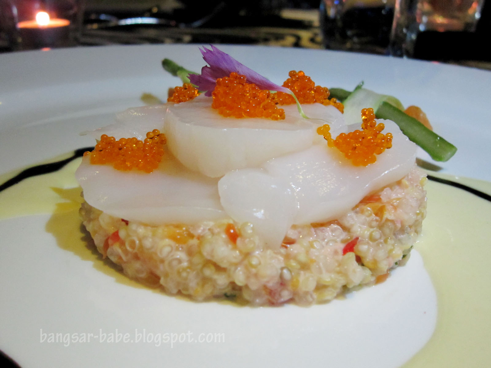 The scallops were sweet and fleshy, while the quinoa gave it a nice, chewy texture. However, I found the diced tomatoes very, very salty.