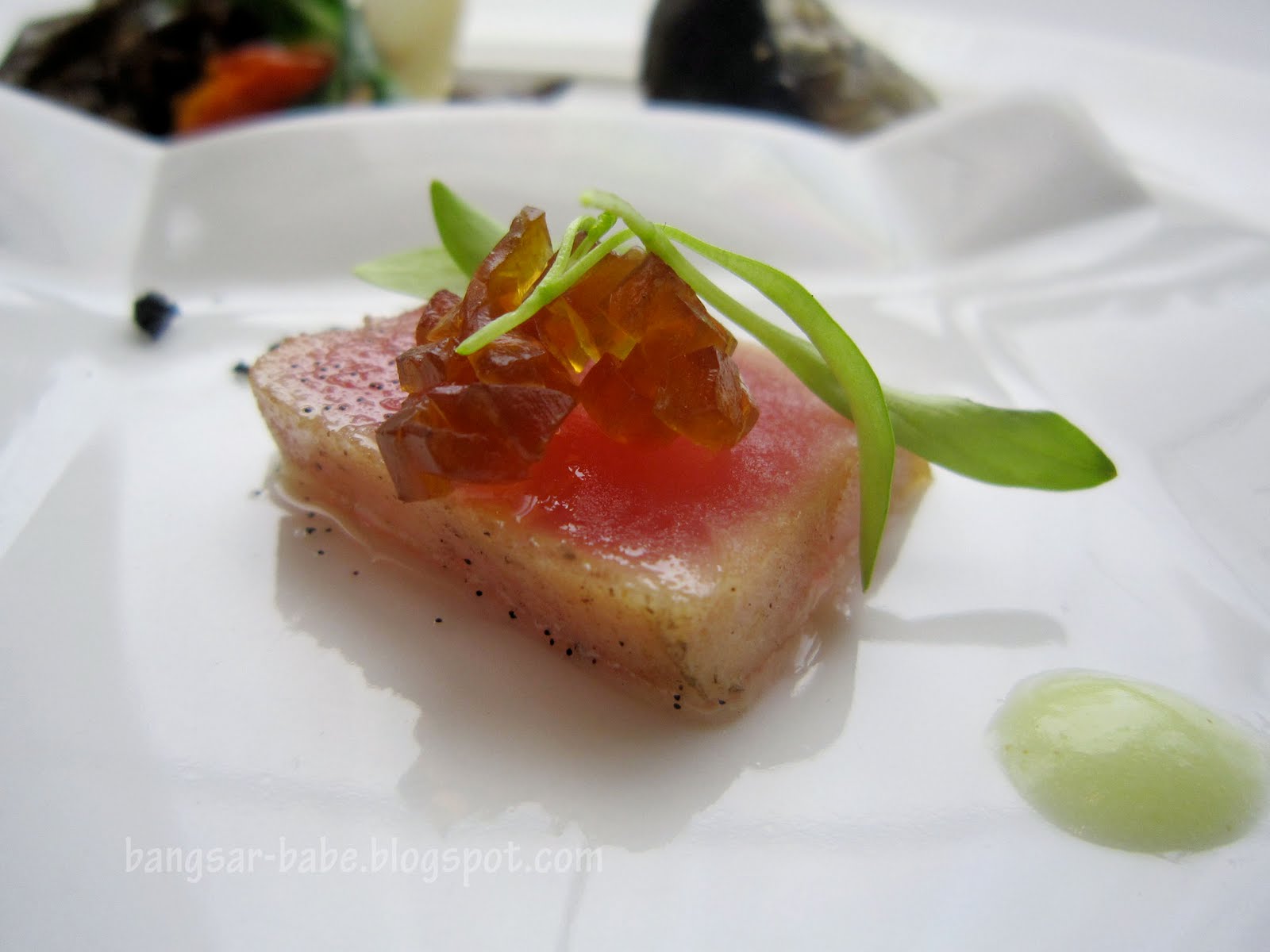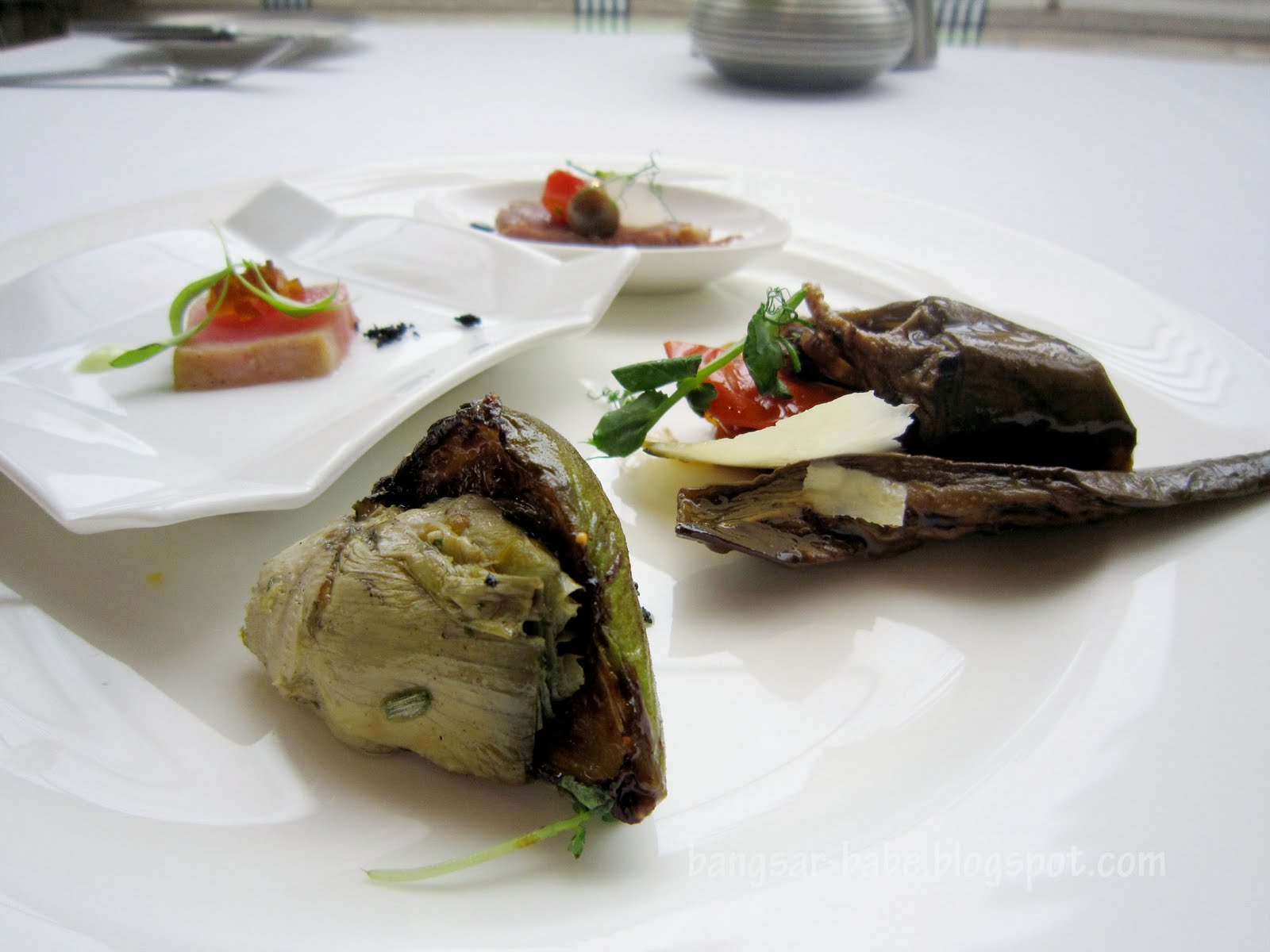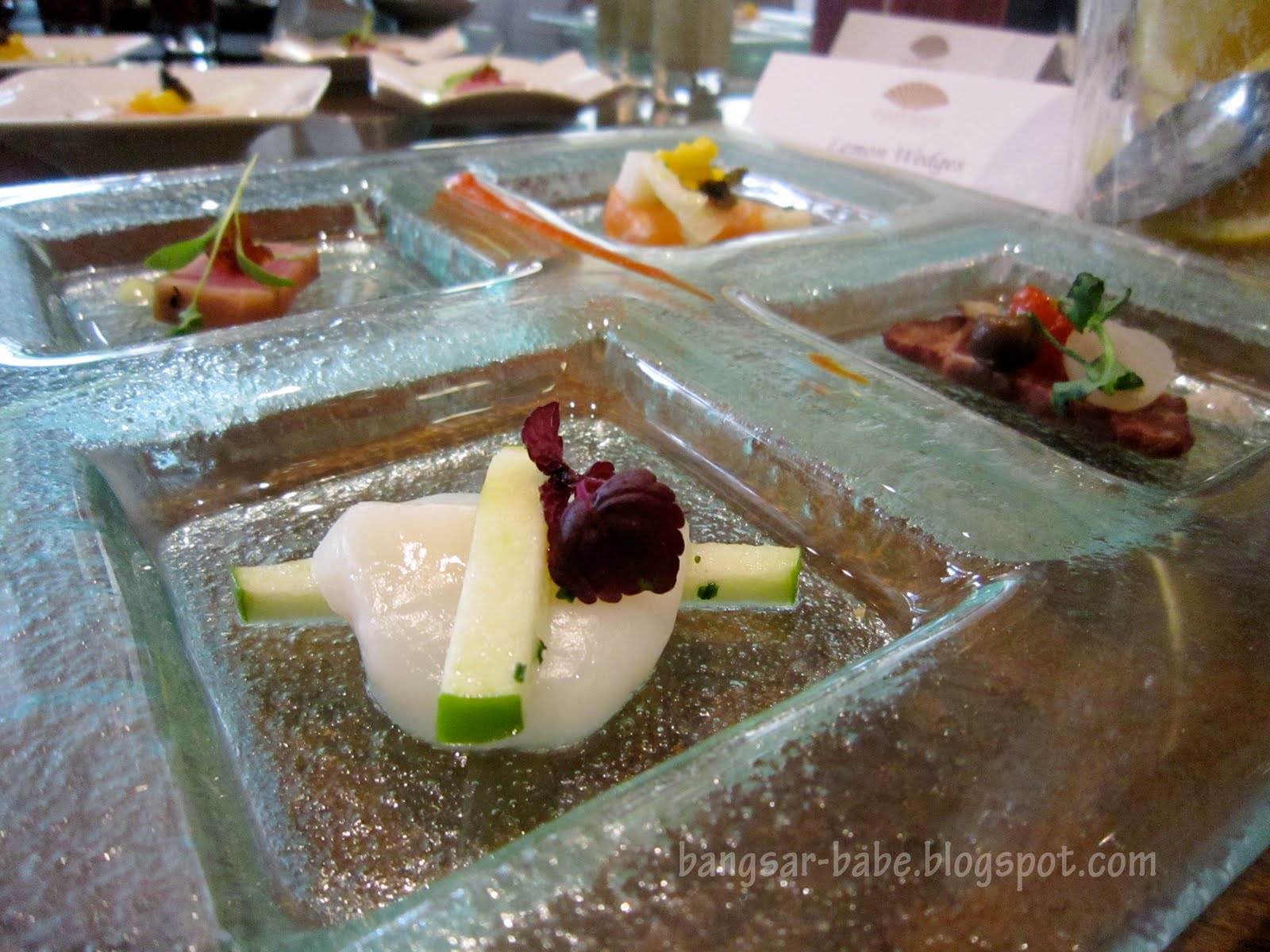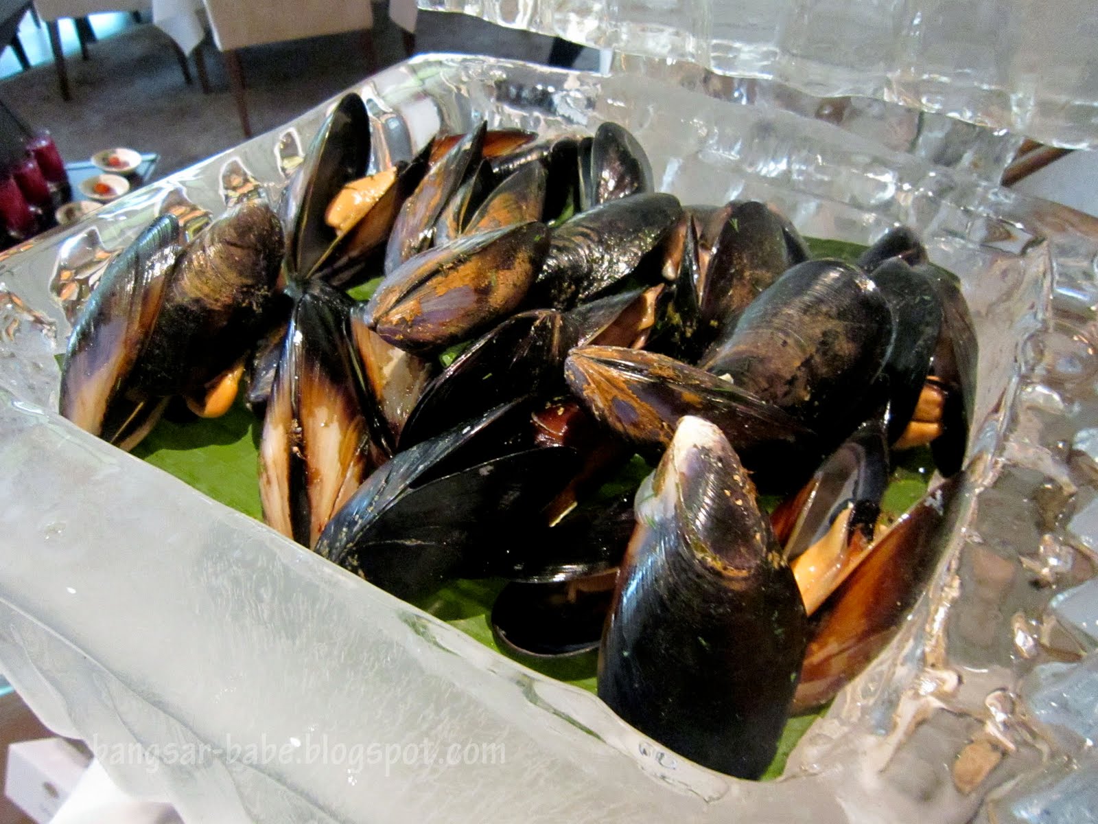 I walked around the spread for a while, not knowing where to start! Cheeses, pastries, freshly baked breads, luscious butter, seafood bar, salad bar, tapas…I was spoilt for choice. Appetizer and antipasti were prepared in small, individual portions and the assortment of amuse bouche tasted as good as they looked. The seafood bar comprised mussels, clams, tiger prawns, eagles rock oyster and crabs, with a choice of shallot xeres vinegar, Rosemarie sauce, cocktail sauce, Tabasco, wasabi mayonnaise as a complement.