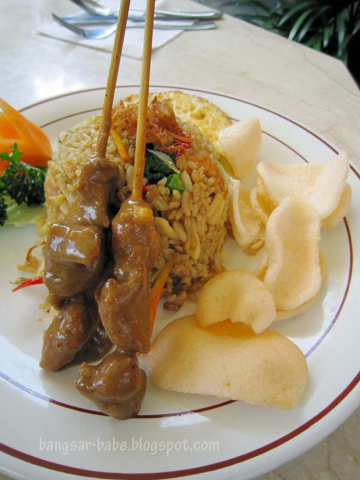 We had lunch at Lobong Café, because I was too tired and hungry to hunt for Warung Nuri. The place was beautiful – we dined al fresco, in the middle of the garden. The nasi goreng special tasted quite good, especially when eaten with some sambal terasi. I liked the satay, which was meaty, tender and thoroughly seasoned. Between the two, I enjoyed the nasi goreng while rif preferred the nasi campur.