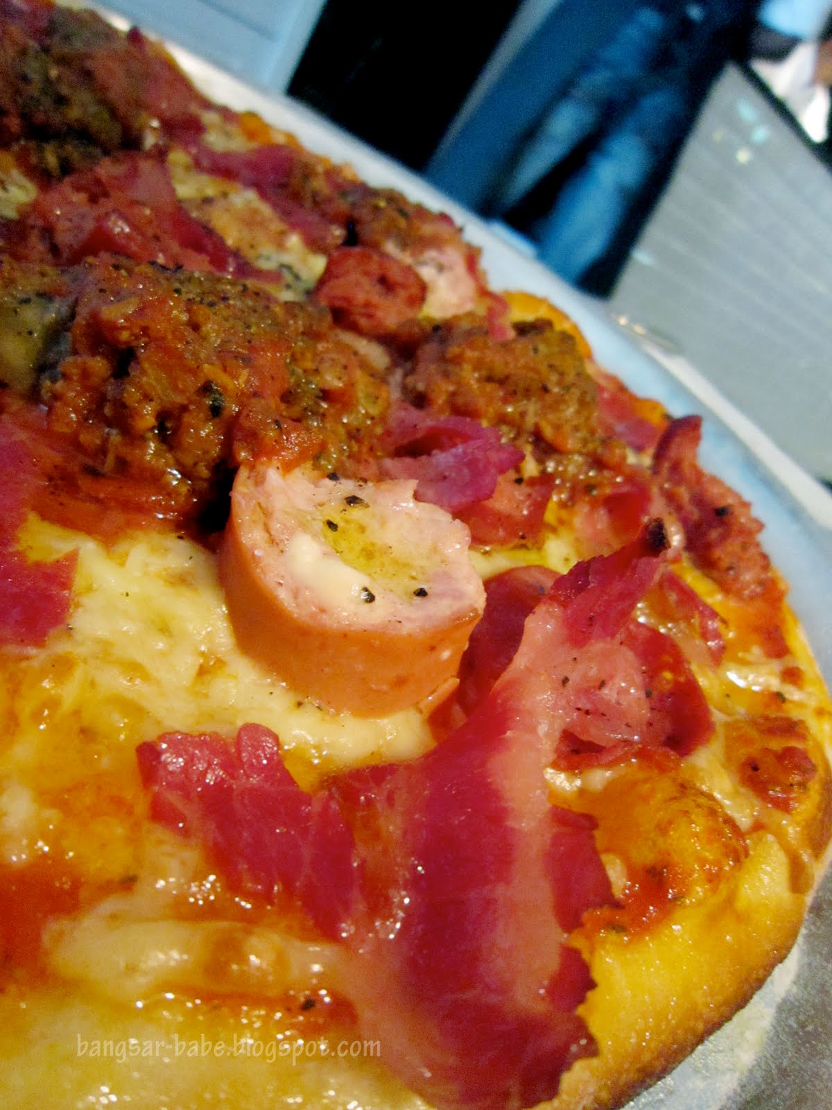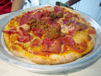 oooh, that pizza looks gloriously topped. much more appetizing than domino's, but virtually the same price, heheh 😀 but ya, i agree that it kinda feels cramped here. my friend and i were fortunate to have a four-seater table to ourselves, but we might not be so lucky the next time! =)