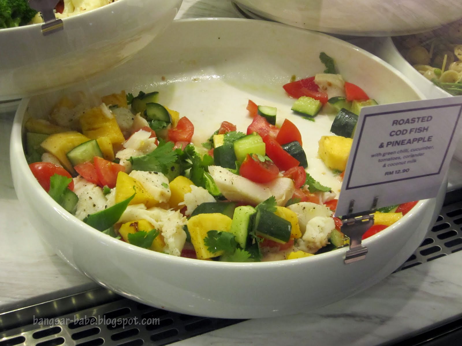 I opted for the pineapple and codfish salad, which turned out bland and boring. Like I said earlier, my food radar has been a bit blunt lately. A few drizzles of olive oil and shakes of pepper fixed it partially.