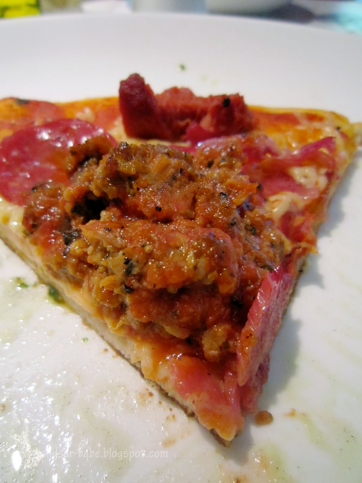 Each bite was meaty, cheesy, chunky and crusty. Expect a bit of smearing around your mouth. The couple next to us had the ruccola pizza which looked and smelt quite promising.