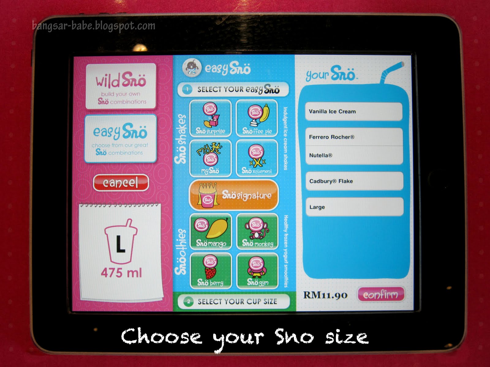 I went for the easiest option; Snö Signature (RM9.90 – medium). Judging from the number of orders for this Snö, is looks like their best seller. This shake of vanilla ice cream, Nutella, Ferrero Rocher and Cadbury Flakes had just the right balance of chocolate, crunch and creaminess. You can also make your own Snö, which is perfect for fusspots. They have a variety of toppings to choose from: Oreo, Kit Kat, Mars Bars, Jaffa cakes, Snickers, Kellogg’s Frosties, Bananas, Nutella, Coco Puffs, Marshmallows, Coffee, Reese’s Peanut Butter…etc. Of course, prices vary according to the ingredients you choose.