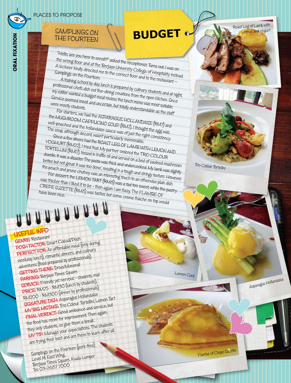 This month’s feature in FACES Magazine was a bit of a challenge. Since it’s their bridal issue, I was assigned to review 4 places that I find are proposal-worthy. Thing is, I never did the proposing! With limited budget and certain restrictions, here are the four places — 2 posh, 2 budget. You can grab a copy of FACES Magazine from the nearest newsstand, or opt to read it as a jpeg file here. Enjoy!